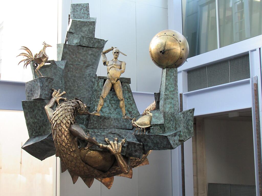 Die von dem Künstler Jacques Monestier 1975 entworfene Messingskulptur zeigt einen Mann, der siegreich gegen die Elemente kämpft: Das Wasser wird durch eine Krabbe symbolisiert, die Erde durch einen Drachen und der Himmel durch einen Vogel. Ein zweiter Teil der Ausstellung ist im Palais de Tokyo zu sehen.