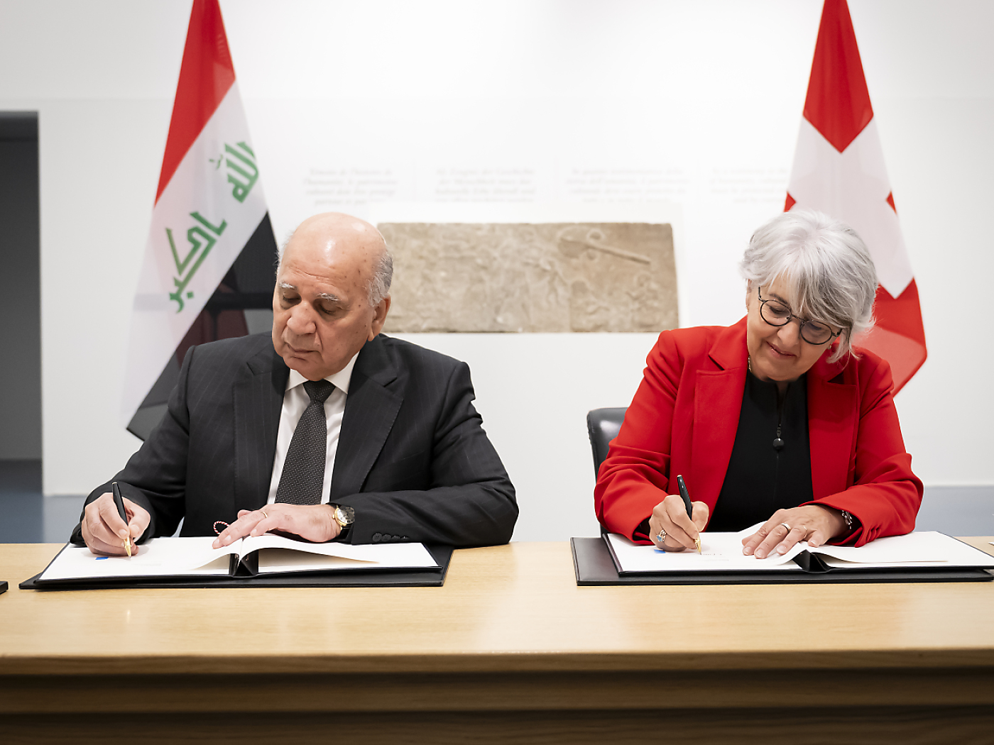 (Keystone-SDA) Der Irak erhält von der Schweiz drei illegal ausgeführte, bedeutende mesopotamische Kulturgüter zurück. Bundesrätin Elisabeth Baume-Schneider hat die beiden Reliefs und die Statue dem irakischen Vizepremierminister und Aussenminister Fuad Hussein übergeben.