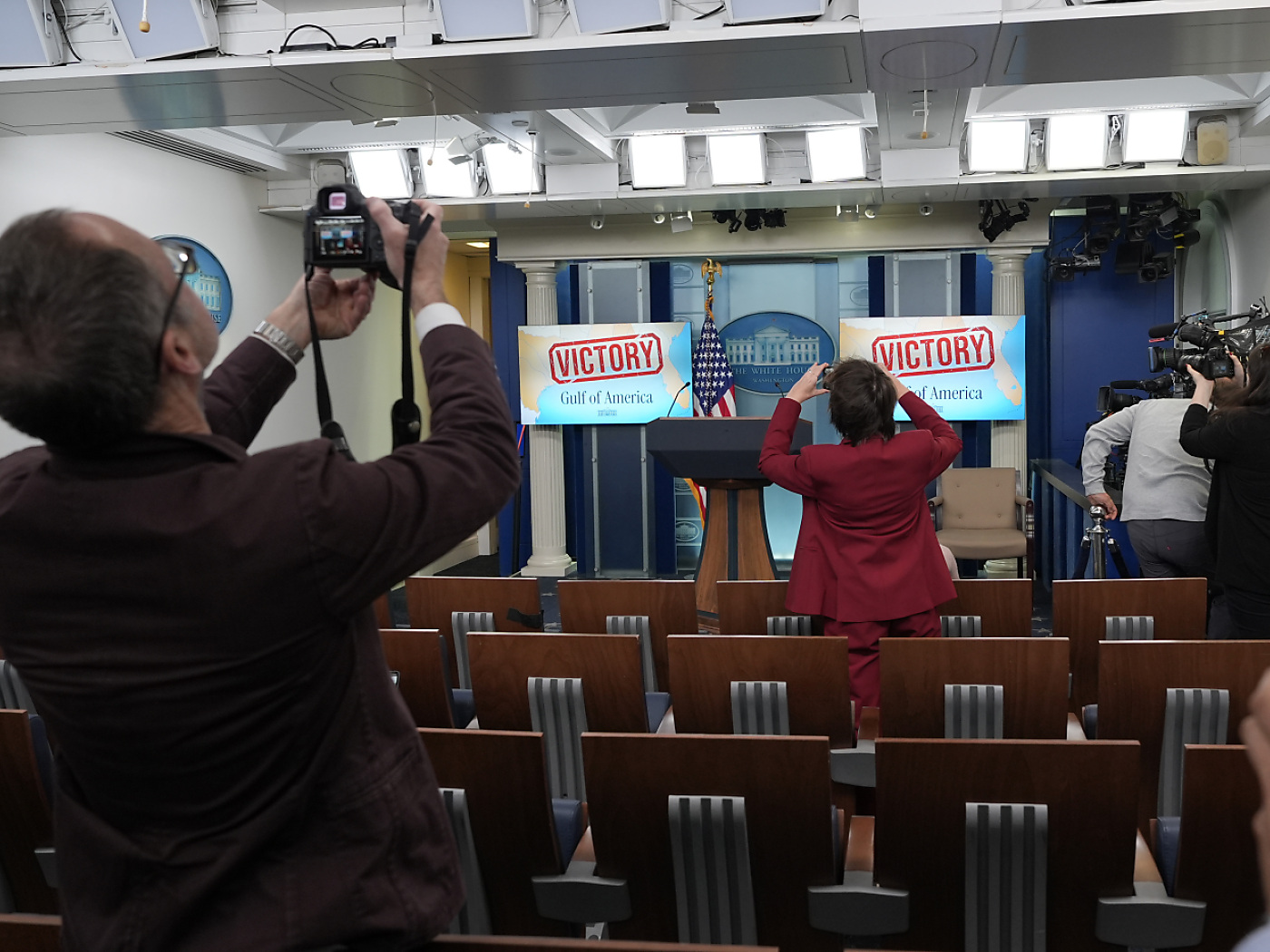 In einer Mitteilung des Weissen Hauses hiess es, der Zugang für Journalisten zum Oval Office oder zur Air Force One sei ein «Privileg», kein rechtlicher Anspruch. Im Presseraum des Weissen Hauses war am Montag eine Landkarte mit der Bezeichnung «Golf von Amerika» zu sehen. Darauf stand in grossen roten Buchstaben das Wort «Sieg».