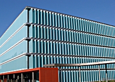 Die blauen, gläsernen Segel der Gebäudehülle des Forschungs- und Verwaltungsgebäudes sehen auf den ersten Blick klotzig, einem Hochsicherheitstrakt ähnlich aus. Bei näherem Hinsehen jedoch erscheint das Ganze plötzlich äusserst ästhetisch.