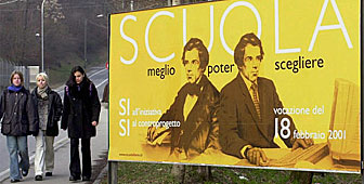 Die aus Kreisen der konservativen kirchlichen Laienbewegung «Communione e Liberazione» (CL) im Jahre 1997 eingereichte Initiative wollte den Privatschulbesuch mit Bildungsgutscheinen fördern.