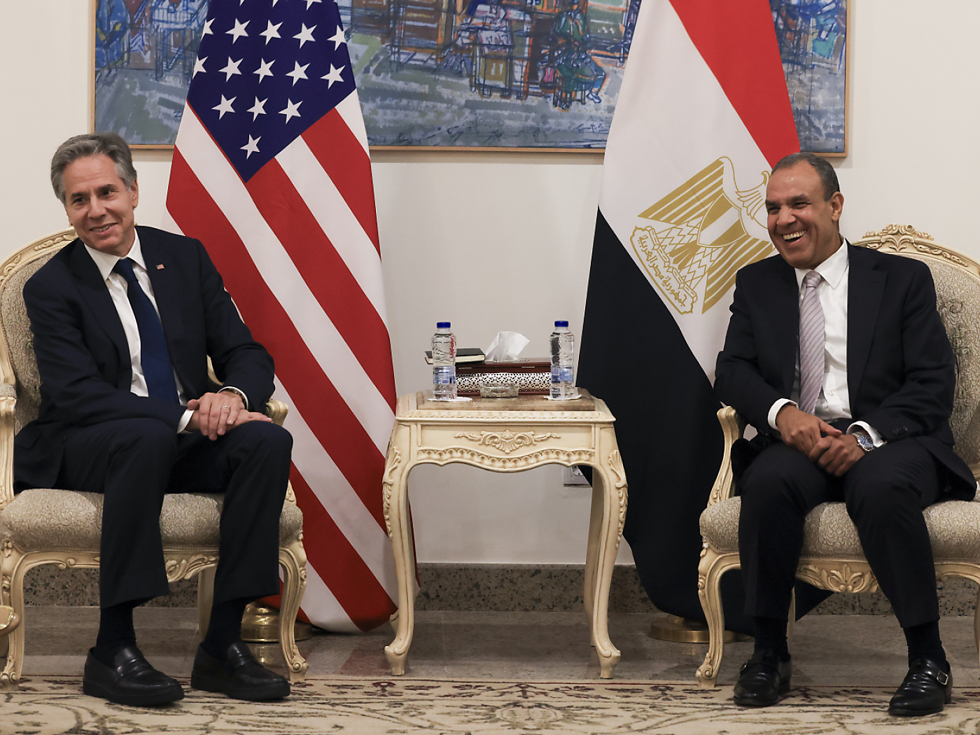 Bei einem Treffen mit Angehörigen von Geiseln sagte Netanjahu nach Medienberichten, es sei nicht sicher, dass es einen Deal mit der Hamas geben werde. Der Regierungschef habe auch erklärt, er sei weiterhin nicht zu einem Rückzug von der strategisch wichtigen Pufferzone zwischen dem Gazastreifen und Ägypten sowie dem Nezarim-Korridor bereit, der den Gazastreifen in einen nördlichen und einen südlichen Abschnitt teilt. Die Hamas besteht aber auf einem vollständigen Rückzug der israelischen Truppen aus dem Gazastreifen als Bedingung für eine Waffenruhe. Kritiker werfen Netanjahu vor, er blockiere eine Einigung, weil er bei Zugeständnissen an die Hamas das Scheitern seiner Regierungskoalition fürchten müsste. Nach dem Besuch in Israel traf Blinken sich mit Ägyptens Präsident Abdel Fattah al-Sisi. Nach Angaben des Staatsinformationsdienstes SIS sagte Al-Sisi, eine Waffenruhe in Gaza müsse der Anfang einer breiteren Anerkennung eines Palästinenserstaats sein, um Stabilität in der Region zu garantieren.