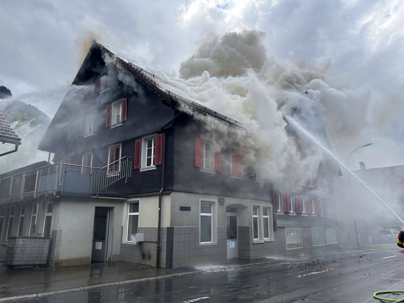 Wegen eines Blitzeinschlags ist am Sonntagnachmittag ein Dachstock eines Mehrfamilienhauses in Muotathal SZ in Brand geraten. Weil die Rauchentwicklung derart stark war, warnten die Behörden die Bevölkerung, Fenster und Türen zu schliessen.