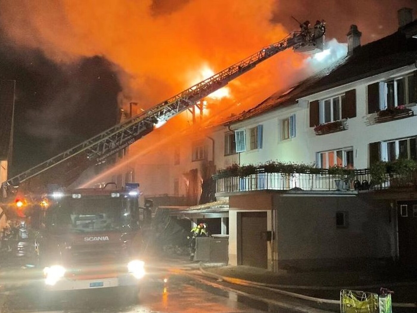 Ein Grossaufgebot mehrerer Feuerwehren der Region bekämpfte den Brand. Trotzdem griff das Feuer laut Schaffhauser Polizei auf die Dächer zweier weiterer Liegenschaften der Häuserzeile über. Es entstand hoher Sachschaden. Die Brandursache ist noch nicht bekannt.