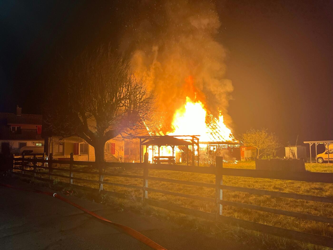 Beim Eintreffen der Einsatzkräfte sei der Anbau bereits in Vollbrand gestanden. Im Einsatz waren laut Medienmitteilung die Feuerwehren Obergösgen und Schönenwerd.
