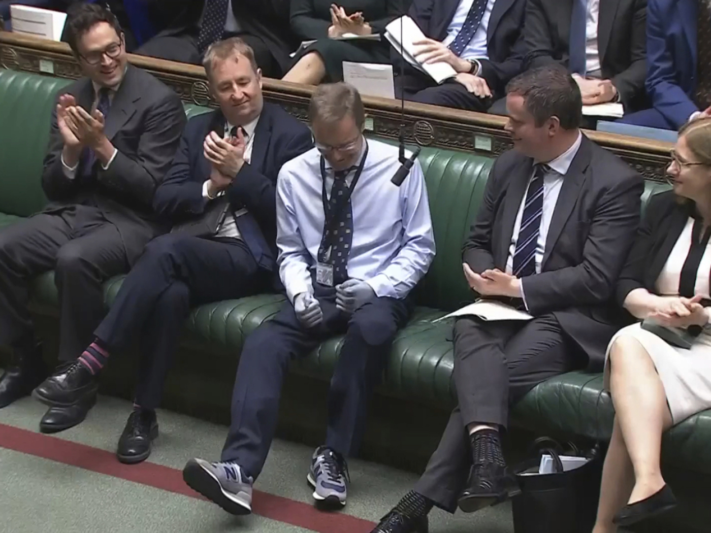 (Keystone-SDA) Wegen einer Sepsis mussten einem britischen Abgeordneten beide Hände und Füsse abgenommen werden. Nach monatelanger Pause erschien Craig Mackinlay am Mittwoch unter tosendem Applaus wieder im Parlament in London.