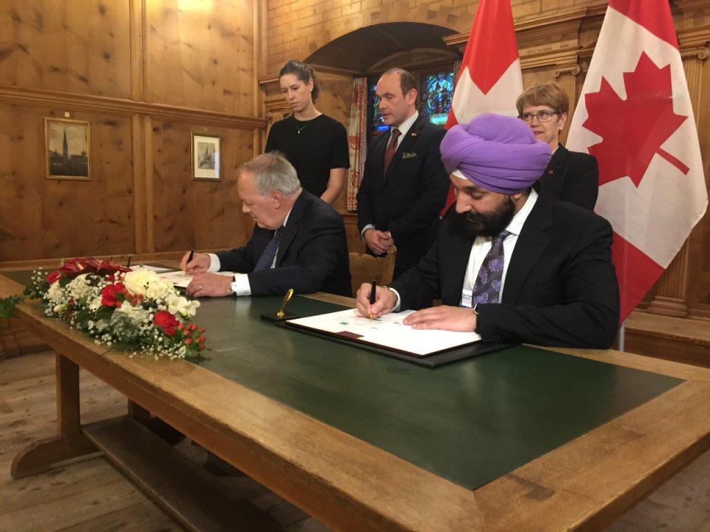 Wirtschaftsminister Johann Schneider-Ammann unterschrieb wie der kanadische Minister für Innovation, Wissenschaft und wirtschaftliche Entwicklung, Navdeep Bains, am Donnerstagabend eine Erklärung. Mit dieser soll ein Ausbau der bilateralen Zusammenarbeit in den Bereichen Wissenschaft, Technologie und Innovation gefördert werden.