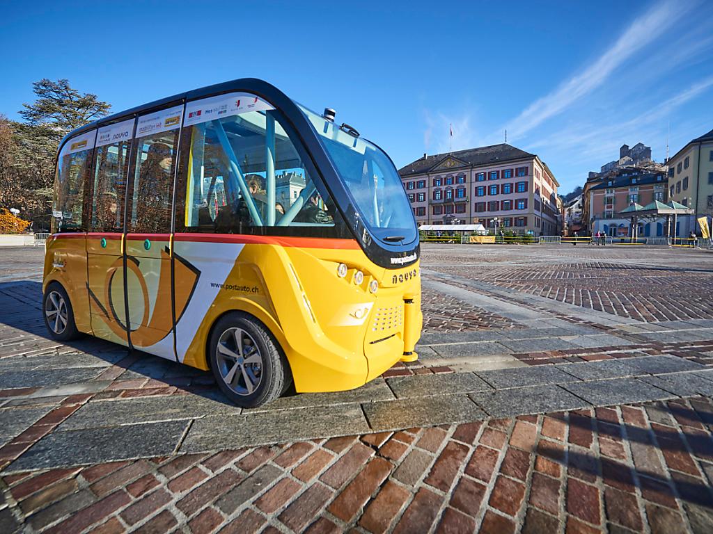 (Keystone-SDA) An einer Haltestelle in der Sittener Altstadt öffnet ein kleiner Bus seine Türe. Drinnen ist gerade noch ein letzter Sitzplatz frei. Und schon rollt der Bus wieder an. Alles ganz normal, möchte man meinen – sässe da bloss ein Busfahrer am Lenkrad.