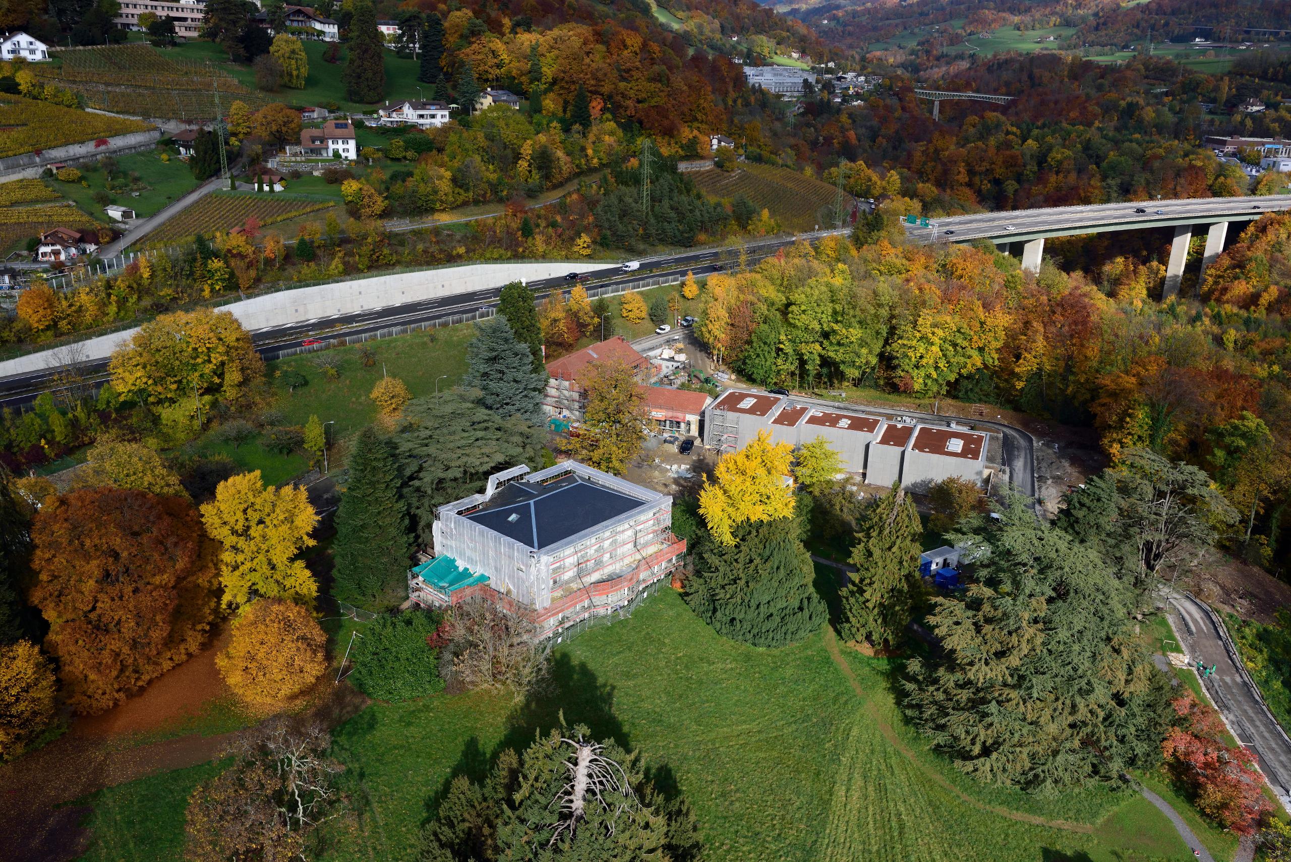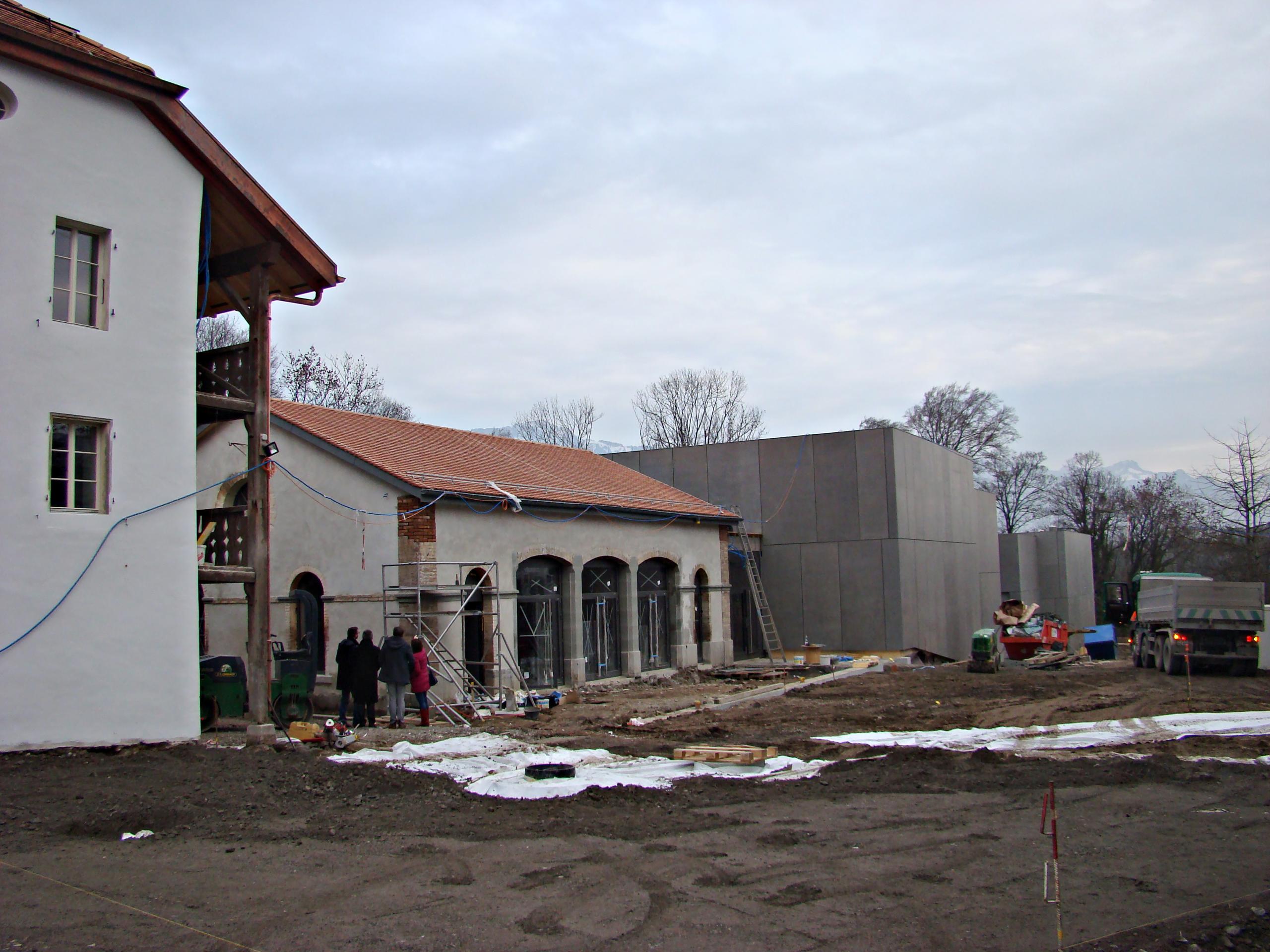 Die letzten Arbeiten laufen auf Hochtouren, der Boden um das Gebäude oberhalb der Stadt Vevey am Genfersee ist tiefer Morast.