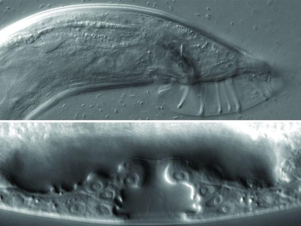 Während dieses Übergangs erfolgt – wie in der Pubertät beim Menschen – die Bildung reifer Geschlechtsorgane, in diesem Fall Vulva und Uterus beim Hermaphroditen und Schwanz (die Forscher nennen das männliche Geschlechtsteil explizit so) beim Männchen. Es gibt keine weiblichen C. elegans-Würmer – nur Zwitter, die sich entweder selbst befruchten oder mit den weniger häufig vorkommenden Männchen paaren.