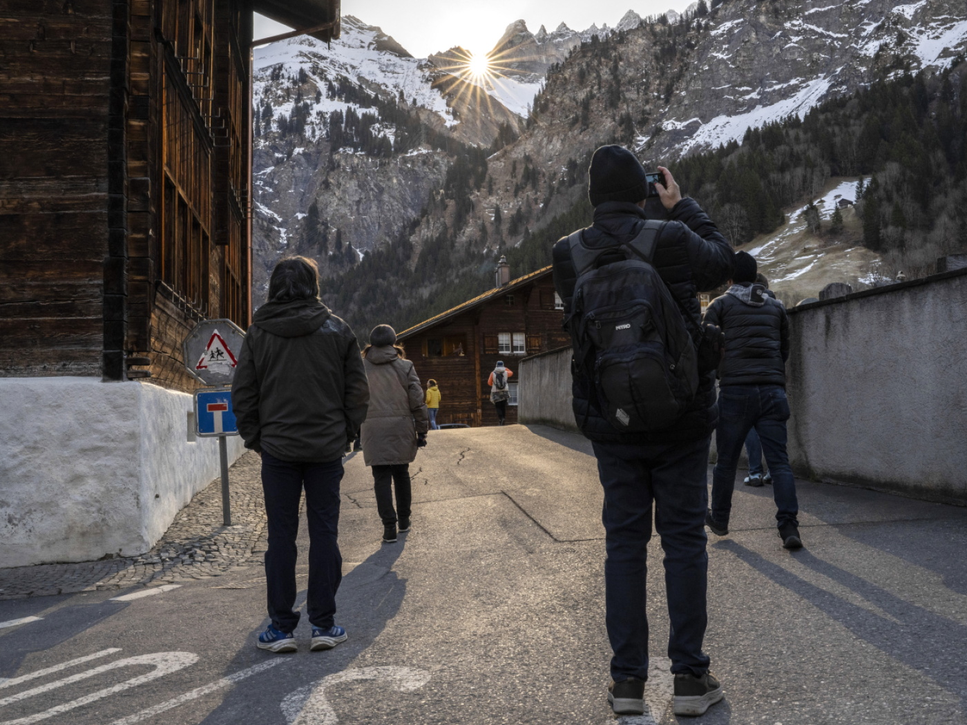 Bei schönstem Wetter hat die Sonne am Freitagmorgen ihre Strahlen durch das Martinsloch geschickt in Elm GL. Fotograf Gian Ehrenzeller war für die Nachrichtenagentur Keystone-SDA dabei.