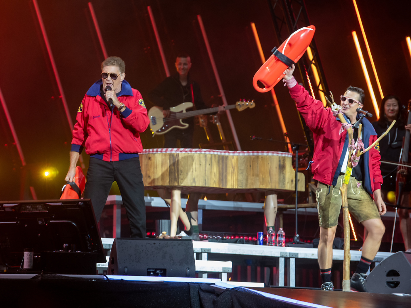 (Keystone-SDA) David Hasselhoff hat am Samstagabend beim Konzert von Andreas Gabalier kurz im Münchner Olympiastadion vorbeigeschaut. Stilecht mit roter «Baywatch»-Jacke, Sonnenbrille und Rettungsboje in der Hand stand der 71-Jährige US-Star auf der Bühne.