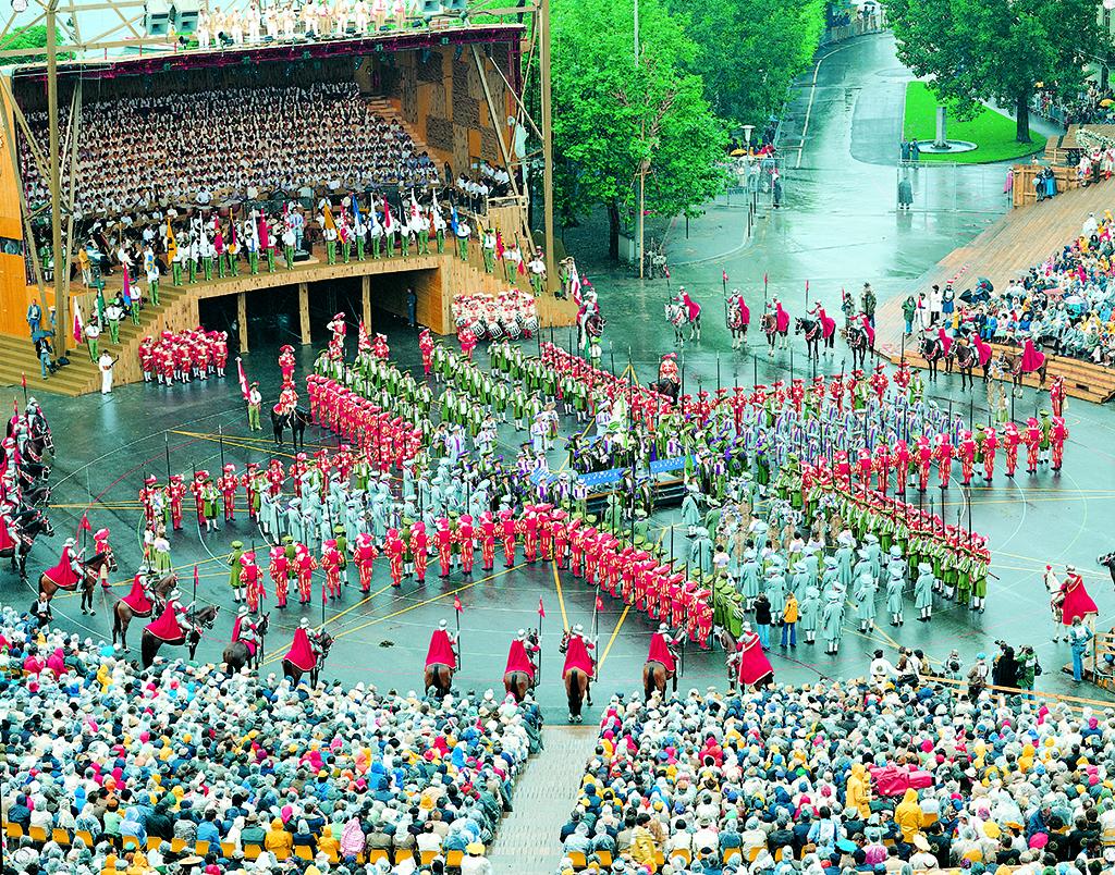 Eine zweistündige Show in der Arena am Rande des Genfersees war das Hauptspektakel des Festivals. 5500 Schauspieler:innen, 900 Sänger:innen, 240 Musiker:innen wirkten daran mit. 6000 Kostüme waren dafür in Italien gefertigt worden.