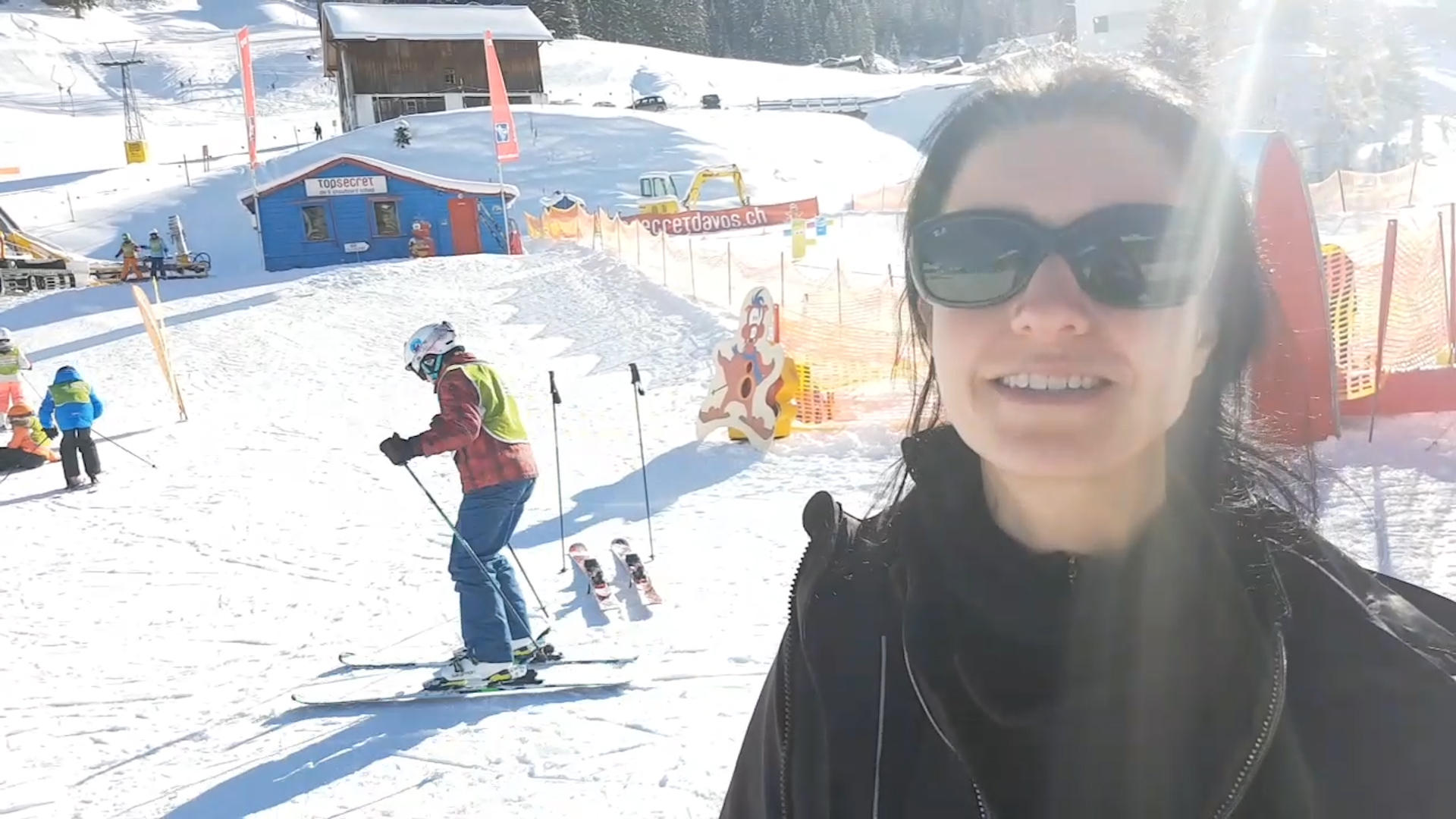 Während des WEF müssen Kindergärtler und Primarschüler in Davos nicht in die Schule. Stattdessen gehen sie auf die Skipisten. Stephanie Müller, Heilpädagogin an der Primarschule Davos Platz, erzählt, warum. (Kristian Kapp, swissinfo.ch)
