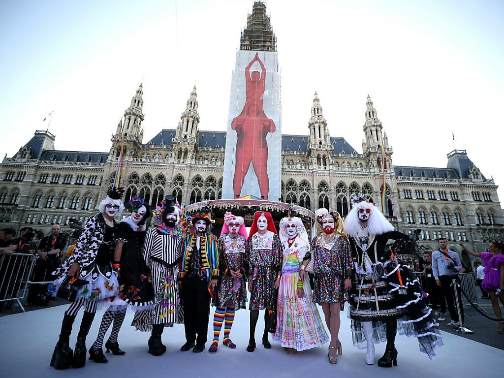 Die ersten Gäste kamen am Samstagabend in aufwendigen Kostümen in Tüll und Regenbogenfarben oder auch mit üppigem Make-up und Perücken zum Wiener Rathaus. Organisator Gery Keszler zeigte sich auf dem roten Teppich unter anderem mit der deutschen Schauspielerin Nastassja Kinski – er klassisch in Schwarz und mit Fliege, sie in einem dezenten beigen Kleid.