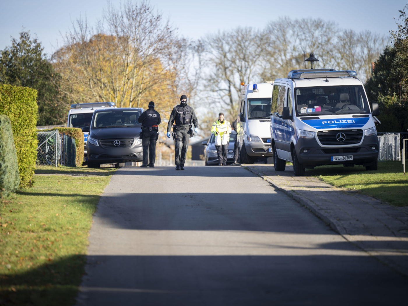 (Keystone-SDA) Es handele sich um Objekte mehrerer Personen in Reimershagen im Landkreis Rostock (Mecklenburg-Vorpommern) sowie um ein Objekt im benachbarten Rum Kogel, bestätigte eine Polizeisprecherin der Deutschen Presse-Agentur (dpa). Rund 120 Kräfte seien im Einsatz, darunter Beamte von Landeskriminalamt und Bereitschaftspolizei.