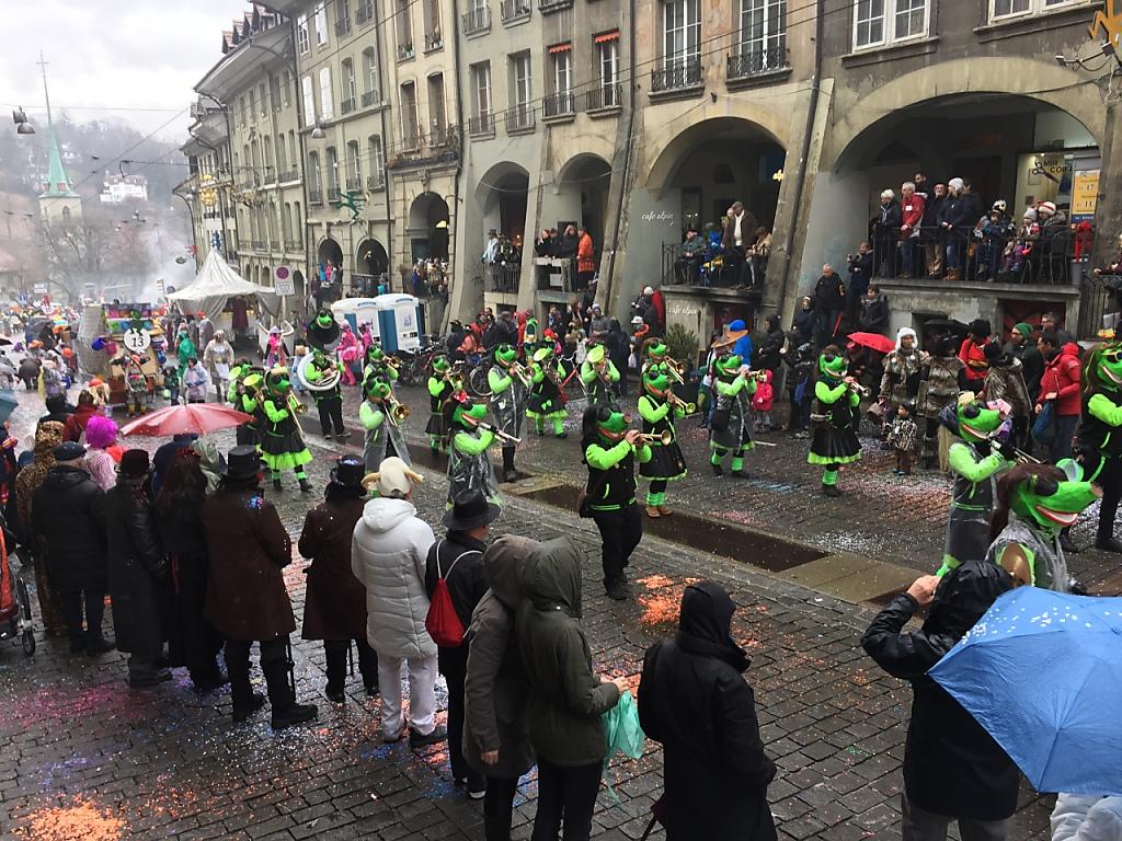 Petrus, so hatte man den Eindruck, ist definitiv kein Berner Fasnächtler. Die vielen Schaulustigen, die sich unter den Altstadtlauben drängten, hingegen schon. Sie liessen sich die Laune nicht verderben, witzelten, tänzelten im Rhythmus der Guggenmusik, warfen mit bunten Papierschnitzeln um sich und genossen ausgelassen die närrischen Tage in der Bundesstadt.