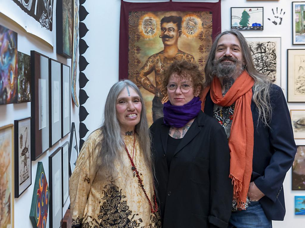 (Keystone-SDA) Mit der Ausstellung «Caresser la peau du ciel» führt das Museum Tinguely in Basel die wundersame Kunstwelt einer Familie, die unter Tattoo-Fans Star-Ruhm besitzt. Sie zeigt, dass die Familie Leu nicht nur auf der Haut kunstvolle Spuren hinterlassen kann.