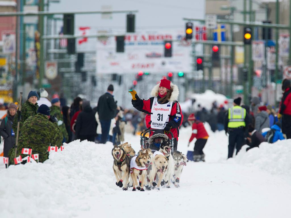Der Start am Samstag war wie immer zeremoniell: Das eigentliche Rennen beginnt stets einen Tag später im etwa 18 Kilometer entfernten Willow.