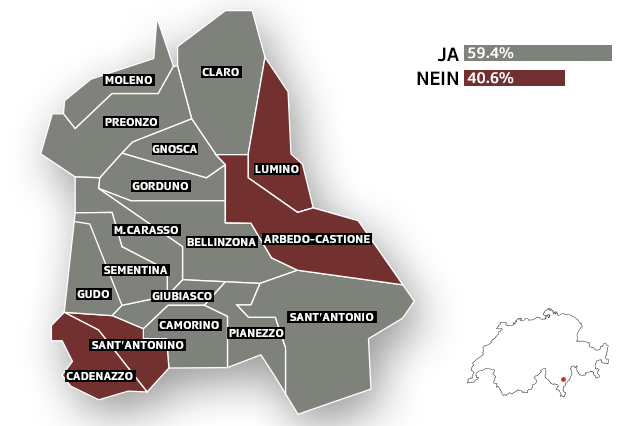 Im Falle der Fusion in Bellinzona wurde so dem Abstimmungsverhalten in allen Gemeinden Rechnung getragen. Doch dies ist nicht immer so. Das Gesetz sieht auch die Möglichkeit einer Zwangsfusion vor.
