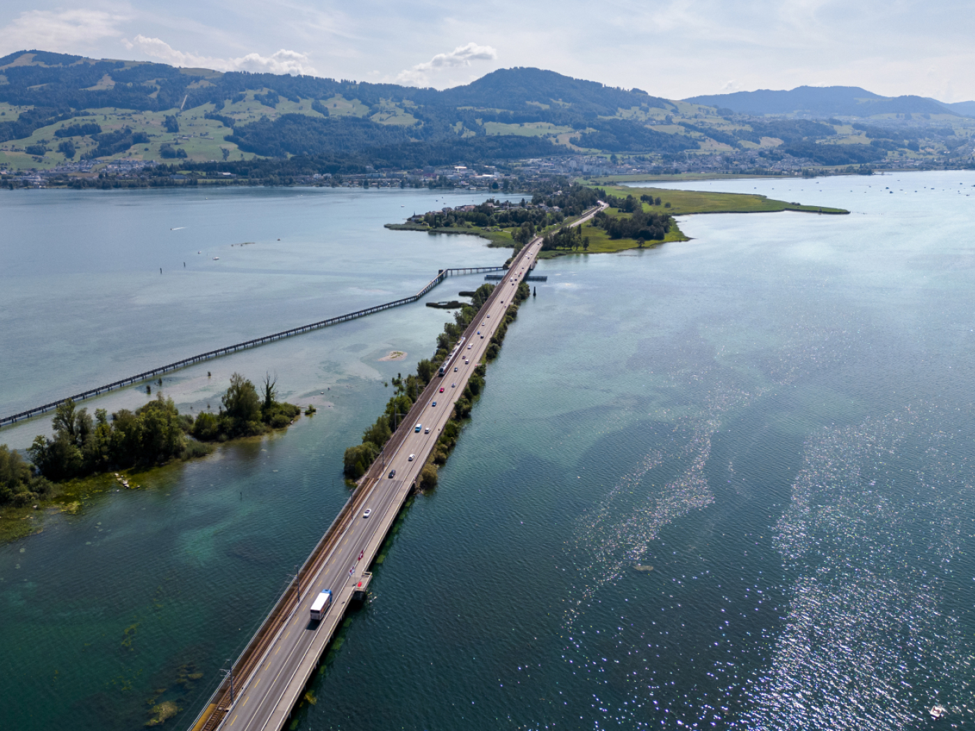Drei Autos kollidieren auf dem Seedamm bei Rapperswil SG