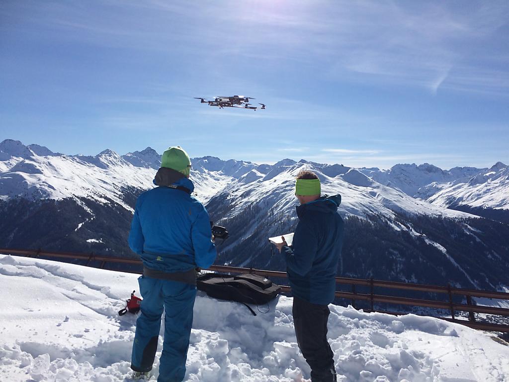 In zwei Testgebieten im Raum Davos liessen die Forscher eine mit Digitalkameras bestückte Versuchsdrohne fliegen: Zum einen in der Sohle des Flüeletals auf 1940 Metern Höhe und auf dem Brämabüel-Gipfel (2500 Meter), wo die Schneedicke innerhalb von nur drei Metern um bis zu fünf Meter variieren kann.
