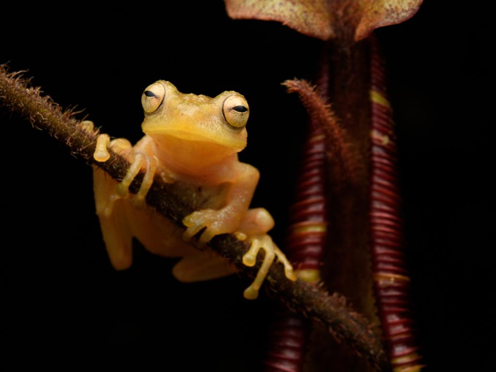 Die Forschenden konnten beobachten, wie die paarungswilligen Frosch-Männchen nachts auf den Kannenpflanzen sitzen und Weibchen anlocken. Die Eier legen die Frösche dann in die Flüssigkeit der Pflanze, wo die geschlüpften Kaulquappen heranwachsen. Als Nahrung dient ihnen der Vorrat aus ihrem Darm, weshalb sie nur ein winziges, zahnloses Mäulchen besitzen.