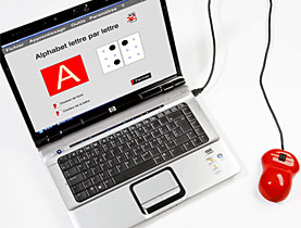 «Mouskie» richtet sich sowohl an Sehbehinderte wie auch an erblindende und vollständig blinde Menschen. Man tippt ein «f» auf der Computer-Tastatur, der Buchstabe erscheint gross auf dem Bildschirm, neben seiner Transkription in Blindenschrift, die Audio-Fassung sagt «f», und der Benutzer fühlt unter seinem Finger die Punkte, die den Buchstaben bilden.