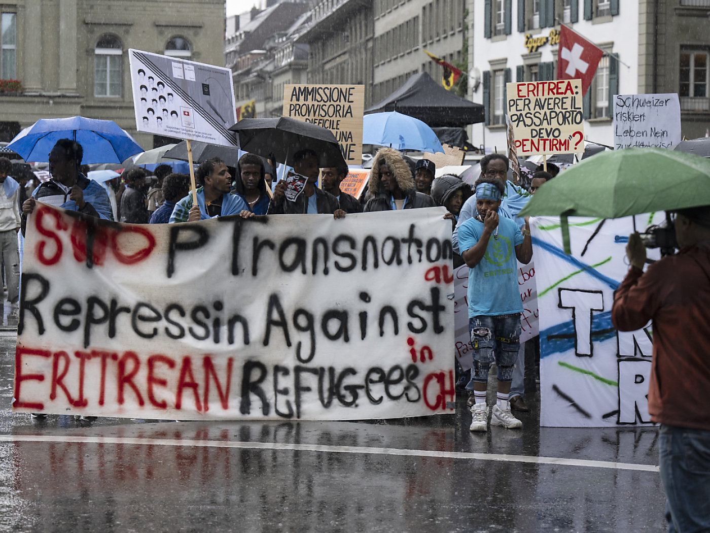 (Keystone-SDA) Etwa 800 regimekritische Eritreer haben am Samstag in Bern für ihre Rechte demonstriert. Sie forderten die Schweiz auf, ihnen Schutz zu gewähren anstatt sie zu diskriminieren.
