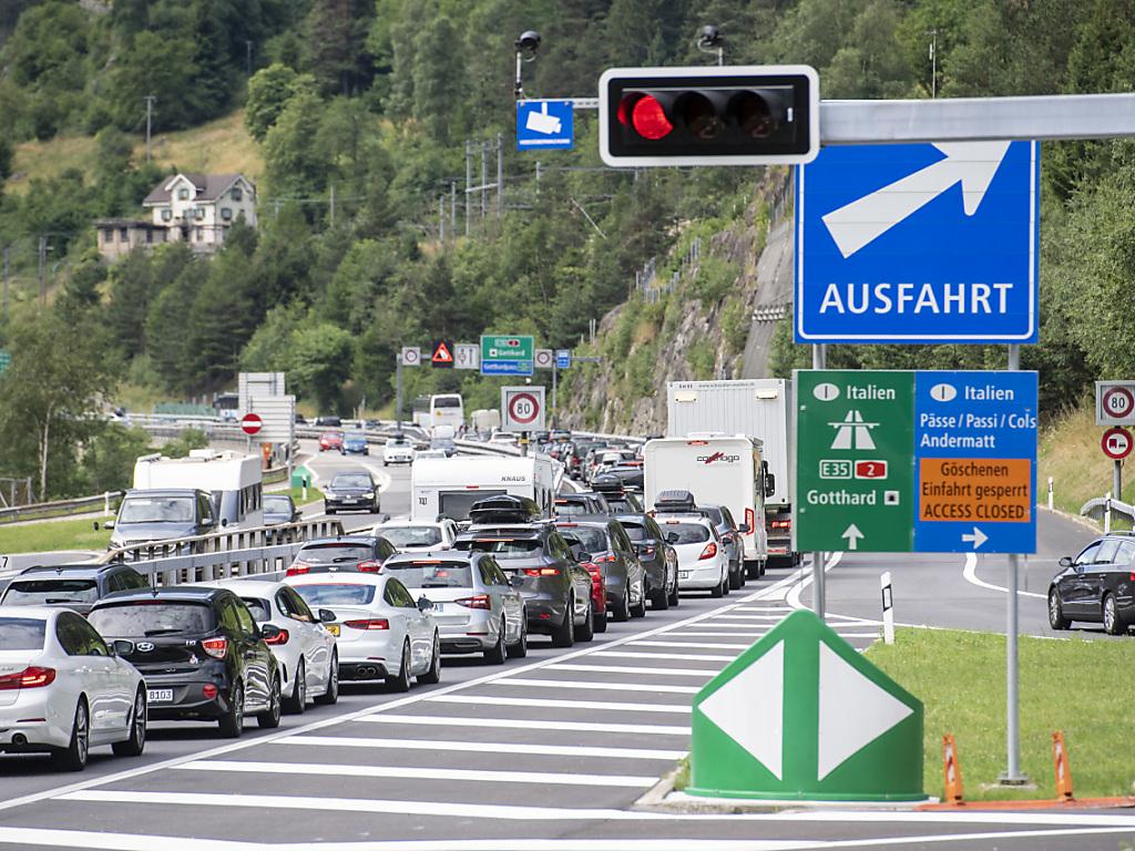 Auf dem Abschnitt der Autobahn A2 zwischen Erstfeld und Göschenen brauchten Automobilistinnen und Automobilisten fast zwei Stunden länger als bei normaler Verkehrslage, teilte der Touring-Club der Schweiz (TCS) auf Twitter mit.