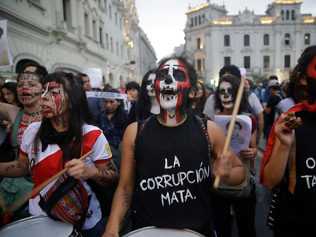 Auf dem Platz San Martín im Zentrum der Hauptstadt skandierten die Demonstranten mit Bezug auf die Initialen Kuczynskis: «Raus, raus PPK!»