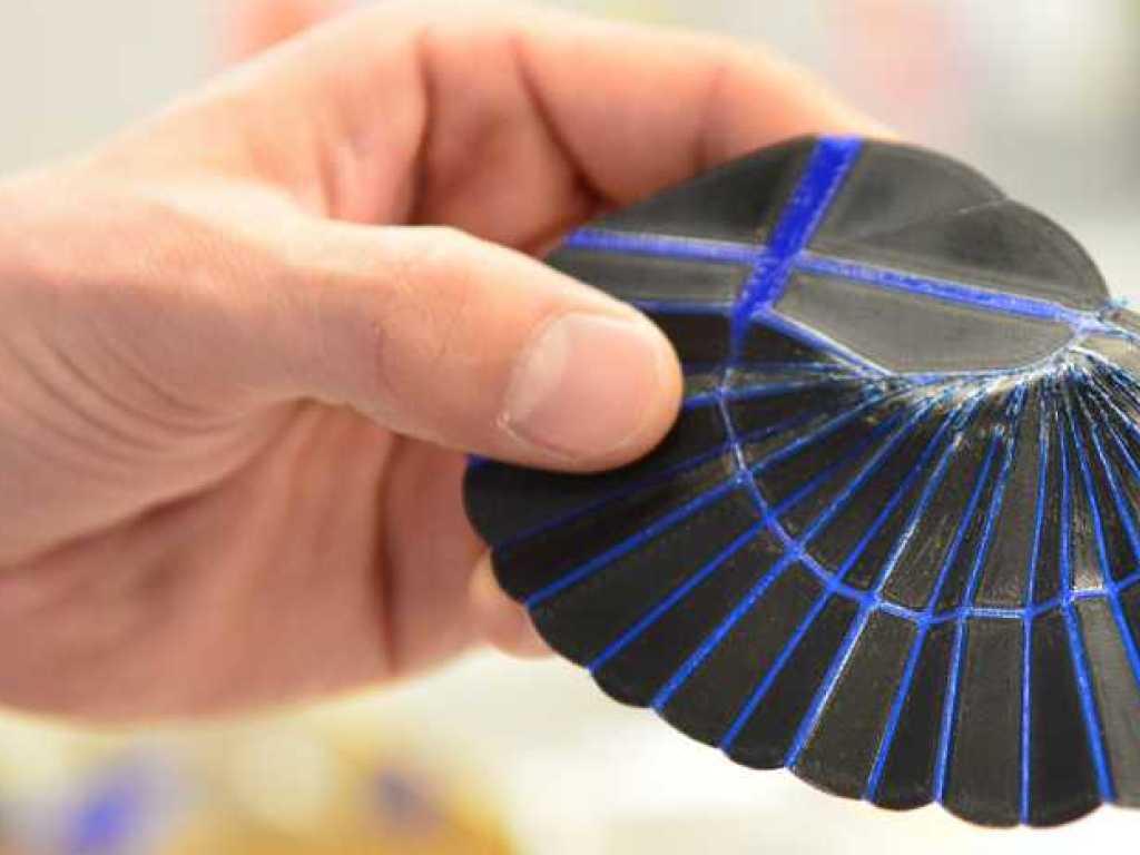 Ihre Erkenntnisse übertrugen die Forscher auf einen Multimaterial-Drucker. Sie stellten in einem Durchgang ein sogenanntes 4D-Element aus vier harten Kunststoffplatten her, miteinander verbunden über einen weichen elastischen Kunststoff. Die Federfunktionen der Verbindungsfalten wurde dem Material dem natürlichen Vorbild entsprechend einprogrammiert.