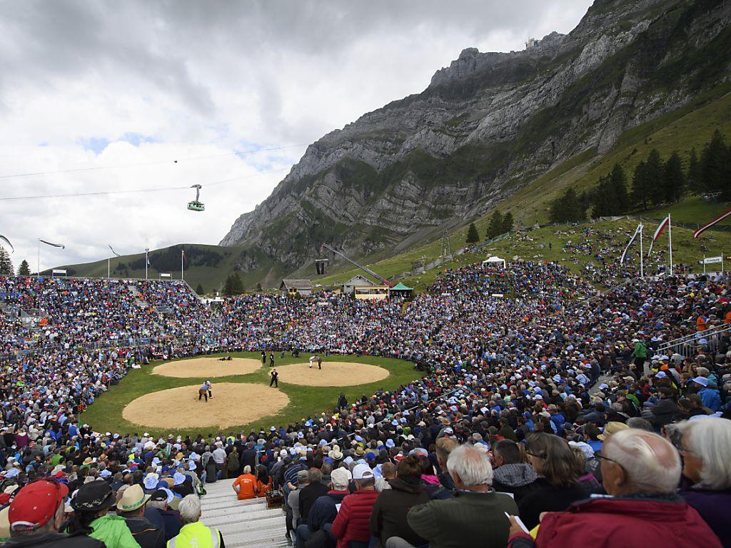 Das Schwägalp-Schwinget im August zieht jeweils 12’000 Besucherinnen und Besucher an und ist damit das grösste alljährliche Schwingfest der Schweiz. Letzten Sommer kamen 13’250 Zuschauerinnen und Zuschauer, um die Kämpfe der «Bösen» vor der imposanten Kulisse des Säntis zu verfolgen.