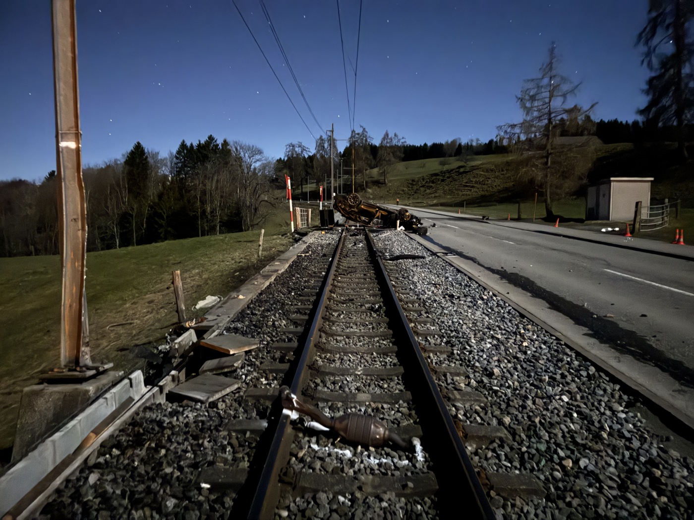Bei der Kollision entstand erheblicher Sachschaden. Die Kollision führt den ganzen Samstag hindurch bis am Sonntag um 02.00 Uhr zu einem Unterbruch der Bahnstrecke St. Gallen Notkersegg-Trogen. Betroffen ist die S21. Grund sind Reparaturarbeiten. Es verkehren Ersatzbusse.