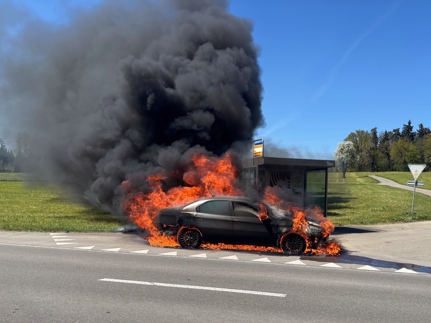 Gemäss Polizei parkierte der 55-Jährige sein Auto in der Nähe einer Bushaltestelle. Dort konnte er das Auto verlassen, ehe es in Vollbrand geriet.