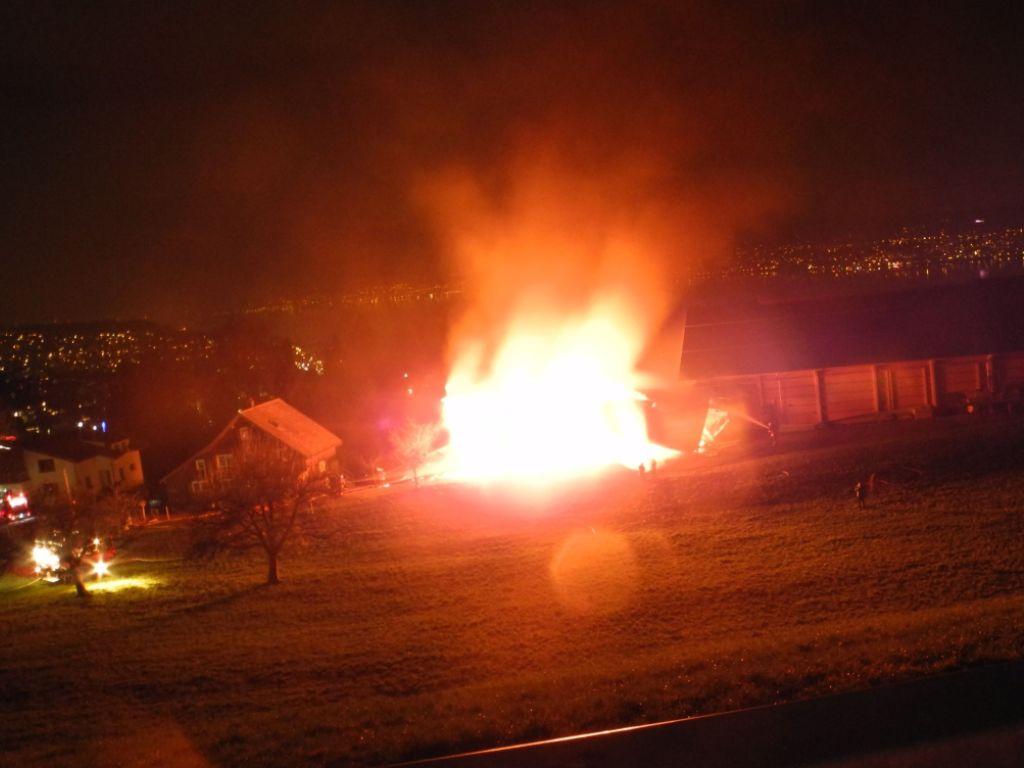 Die Polizisten alarmierten die Feuerwehr und weckten die Anwohner der beiden naheliegenden Gebäude, die evakuiert wurden. Der Feuerwehr gelang es, ein Übergreifen des Feuers auf den anliegenden neuen grossen Stall sowie die beiden Wohnhäuser zu verhindern. Die Remise brannte komplett aus.
