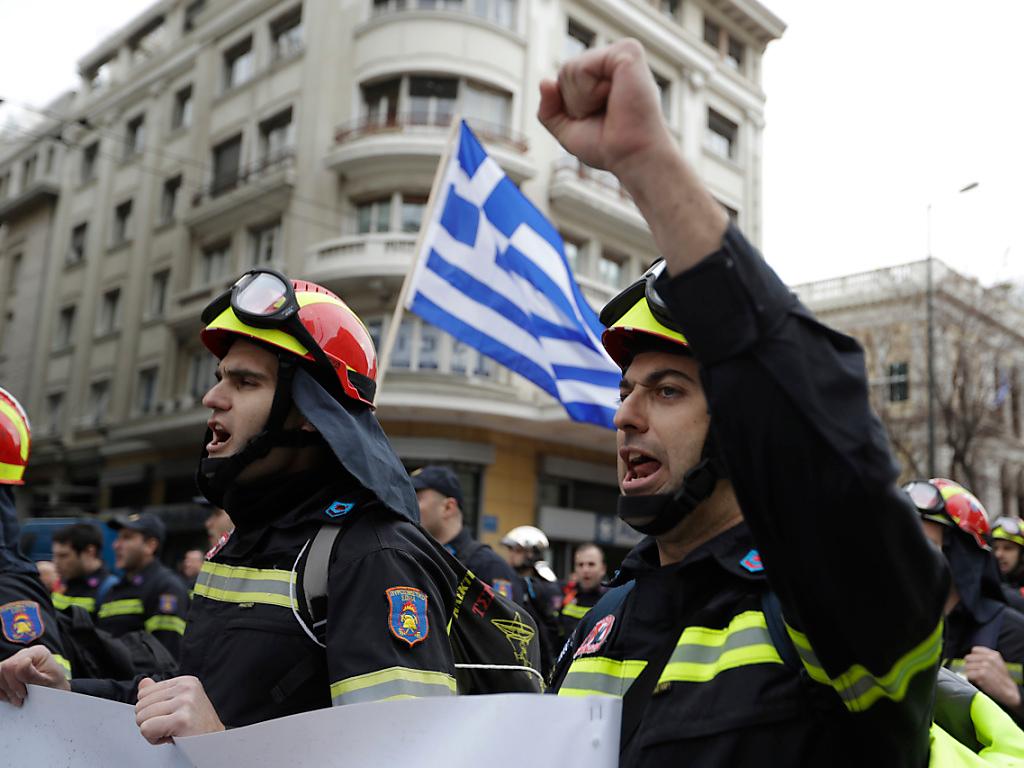 (Keystone-SDA) Dutzende auf Zeit beschäftigte griechische Feuerwehrleute haben am Mittwoch den Eingang des Ministeriums für Verwaltungsreform im Zentrum Athens gestürmt und vorübergehend besetzt. «Hier und jetzt Festanstellung», skandierten die uniformierten Feuerwehrleute.