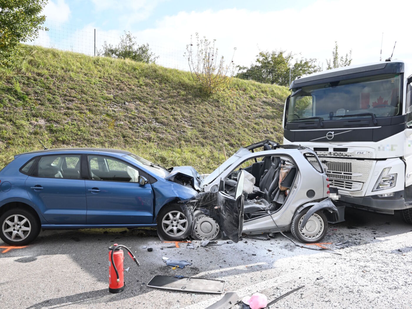 Die 79-jährige Frau musste vor Ort reanimiert werden. Die Rega flog sie anschliessend in ein Spital. Die 20-jährige Autofahrerin wurde unbestimmt verletzt und durch den Rettungsdienst ins Spital gefahren. Die Lastwagenfahrerin blieb unverletzt.