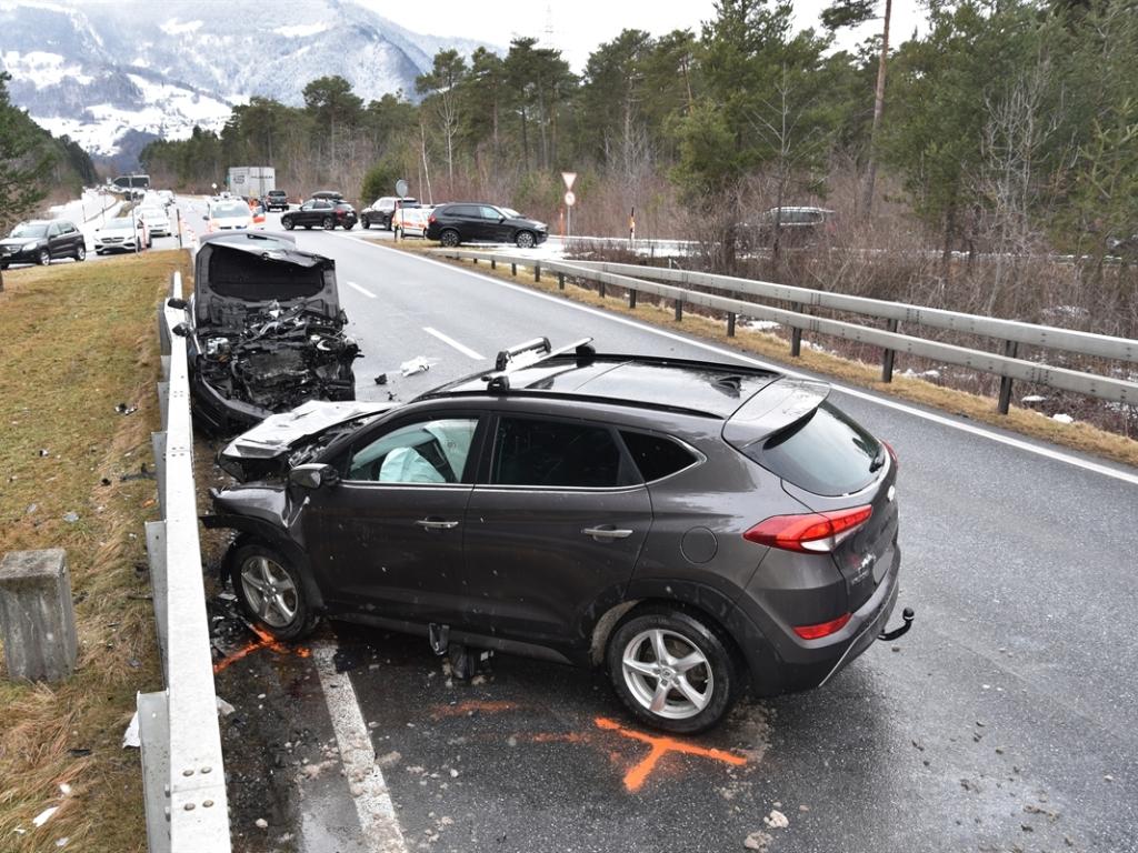 Beim Anschluss Camping Ganda kollidierten die beiden Fahrzeuge frontal miteinander, wie die Polizei weiter mitteilte. Alle Fahrzeuginsassen in beiden Autos verletzten sich mittelschwer.