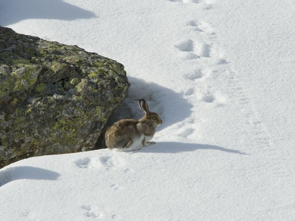 Der Schneehase ist als ans Hochgebirge angepasste Art besonders stark vom Klimawandel betroffen. Wird es ihm zu warm, kann er wegen den schroffen Felswänden nur begrenzt in kühlere, höher gelegene Gefilde ausweichen.