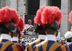Aus dem Fenster seiner Wohnung am Petersplatz erklärte der Papst am Donnerstag, dass die Gardisten vor 500 Jahren wie auch heute dem Vatikan einen wertvollen Dienst leisteten. Mit dieser Zeremonie endete der Gedenkmarsch der Ex-Gardisten.