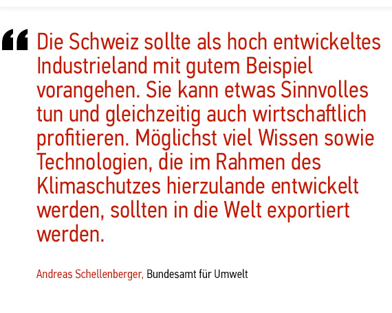Die Schweiz war bei internationalen Ereignissen zu CO2-Emissionen immer sehr aktiv. Kleine Länder können als Modell dienen, insbesondere im politischen und technischen Bereich. Ein Beispiel: Australien, in Sachen Emissionen ein kleines Land, wird China dabei helfen, einen Austausch für Emissionszertifikate zu entwickeln.»