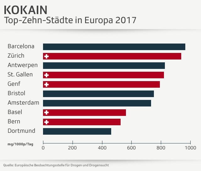 Die Schweiz ist ein Paradies für den Verkauf von Suchtmitteln. Die tiefe Regulierung und die hohe Kaufkraft bieten ideale Voraussetzungen für den Verkauf und Konsum von illegalen und legalen Drogen. Zu diesem Schluss kommt die Stiftung Sucht Schweiz im Schweizer Suchtpanorama 2019Externer Link. Sie hat darin die Suchtmittelmärkte untersucht.