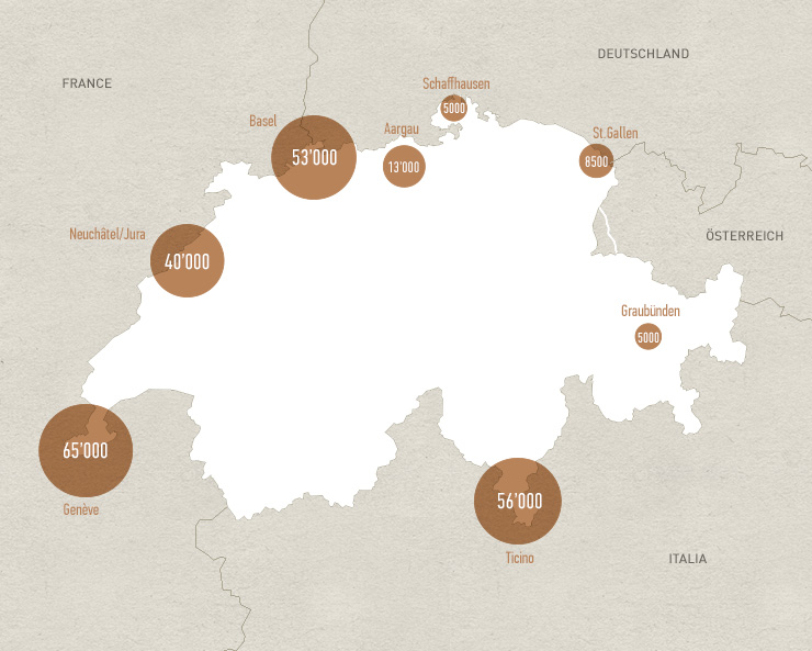 In den letzten zehn Jahren hat sich deren Zahl von 32’900 Ende 2002 auf 65’150 Ende 2012 verdoppelt. Insgesamt waren gar 82’200 Ausländer im Besitz einer Grenzgänger-Bewilligung.