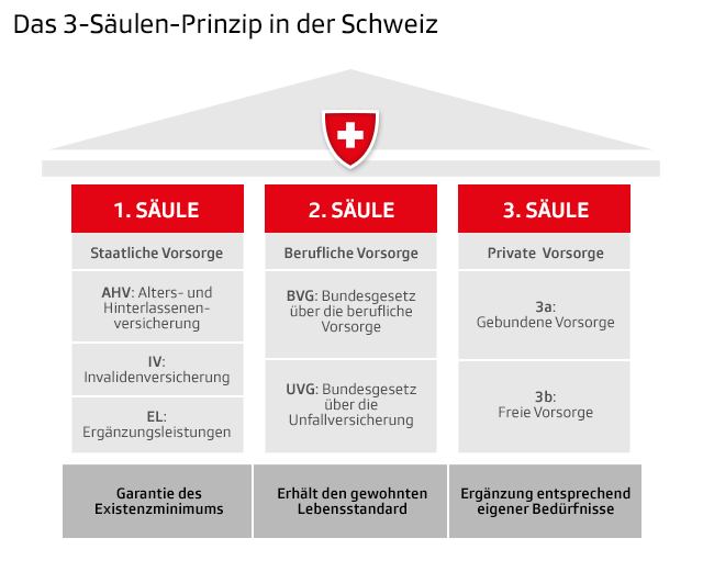 Die Kluft ist vor allem darauf zurückzuführen, wie das Schweizer Rentensystem aufgebaut ist. Es besteht aus drei Säulen: Obligatorische Alters- und Hinterlassenenversicherung (AHV), berufliche Altersvorsorge (Pensionskassen) sowie freiwilliges, steuerbegünstigtes privates Sparen.