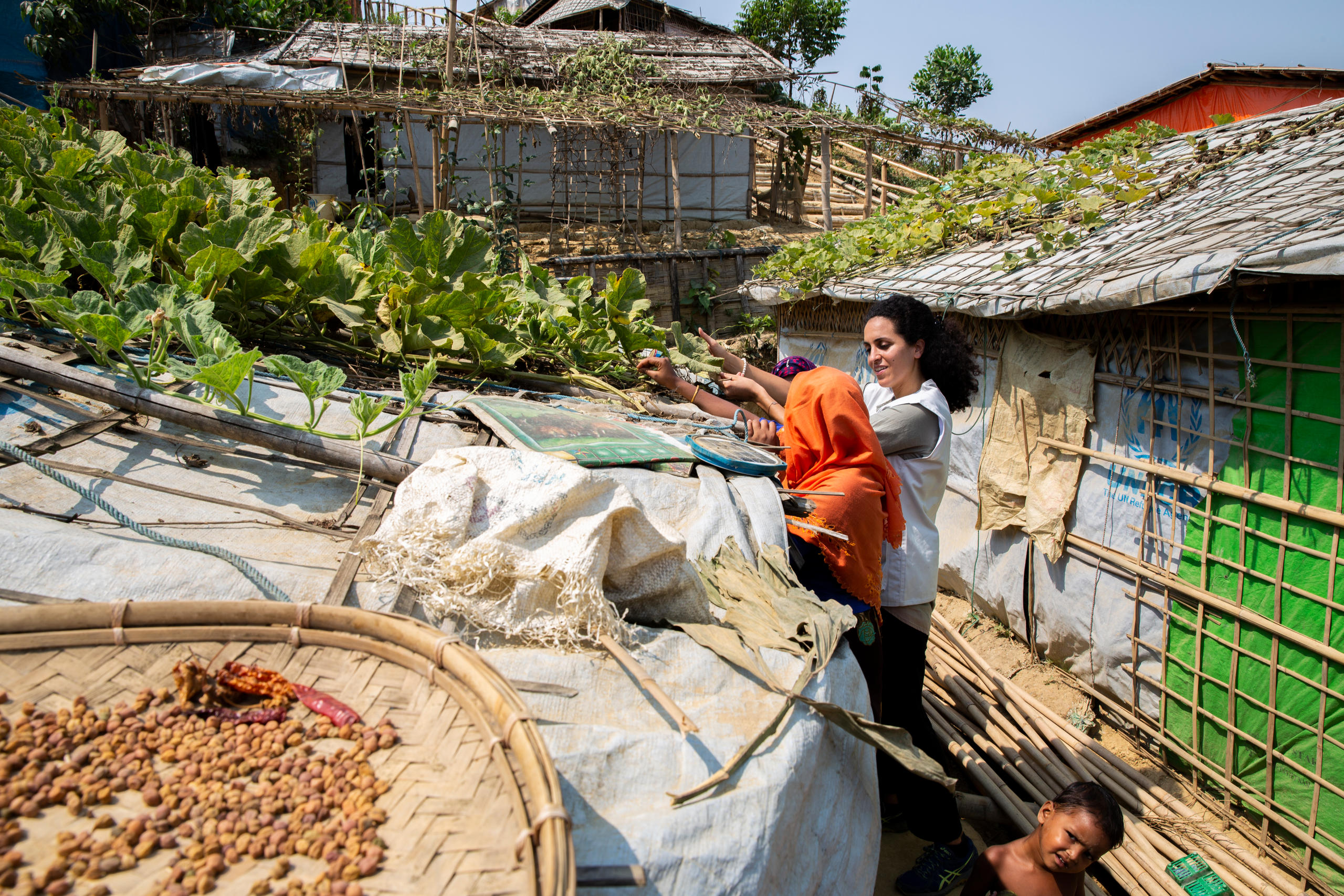 Bisher haben sie von den Grundnahrungsmitteln Reis, Linsen und Öl gelebt, die seit Ankunft der Rohingya hier verteilt werden. Und sie können ihr Gemüse auf dem Markt verkaufen, was ihnen ein kleines Einkommen gibt, mit dem sie zum Beispiel Fisch oder Fleisch kaufen können.