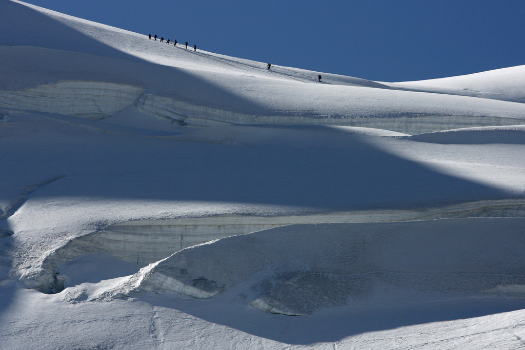 «Grosse Bergsteigerschulen starten oft mit sechs, sieben Gästen auf die Tour um den Monte Rosa, in der Hoffnung, dass diese zu müde sind, um am Ende die Dufourspitze zu traversieren», erklärt er. Eine potenziell gefährliche Praxis, ist doch die empfohlene Anzahl Kunden für die 4618 Meter hohe Dufourspitze im Kanton Wallis maximal zwei.