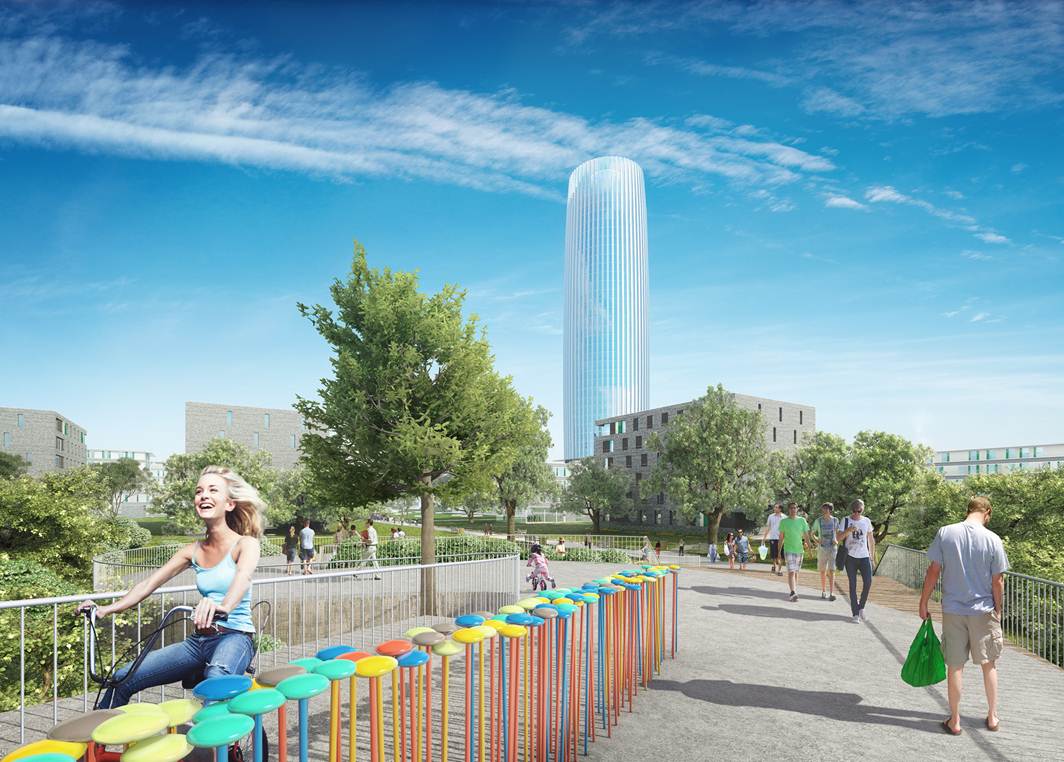 Seit 22 Jahren plant das Lausanner Architekturbüro Richter-Dahl Rocha ein spektakuläres, 120 Meter hohes Hochhaus im Westen der Stadt. Der Turm wird dereinst ein weitherum sichtbares Symbol für den tiefgreifenden Wandel des Grossraumes Lausanne sein und den Beginn eines Wolkenkratzerbooms in der Westschweiz markieren.