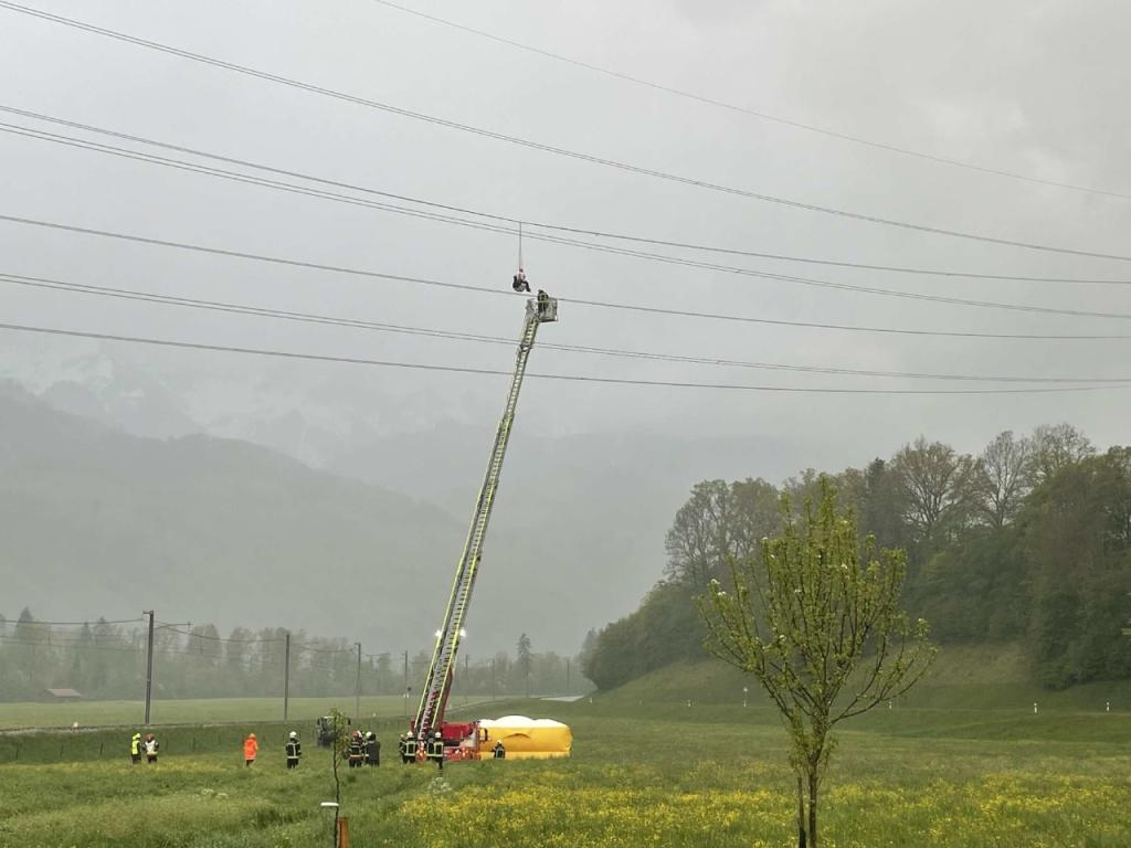 Aufgrund des schlechten Wetters musste der Verunfallte von der Feuerwehr mit einer Hebebühne geborgen werden. Für die Bergung wurde den Angaben zufolge die Hochspannungsleitung vom Stromnetz genommen. Der Verletzte wurde mit einem Helikopter in ein Spital in der Region geflogen.