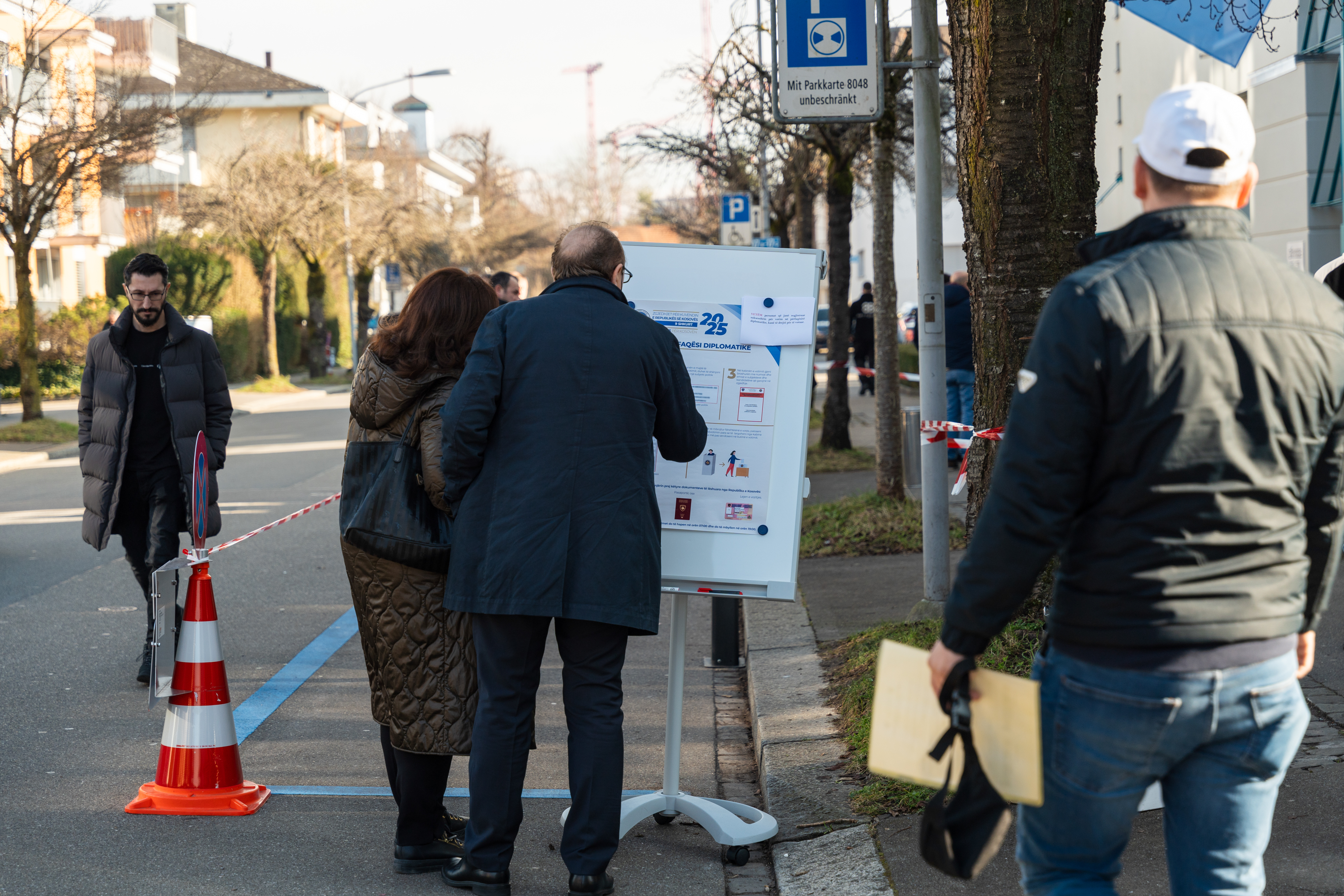Es ist für den Botschafter Latifi auch deshalb ein aufregender Tag, weil es eine Premiere ist: Ausland-Kosovarinnen und -Kosovaren konnten bereits davor wählen, aber nur brieflich und unter weitaus komplizierten Umständen: Es war eine telefonische Anmeldung nötig und der Postversand des Wahlcouverts nach Kosovo.